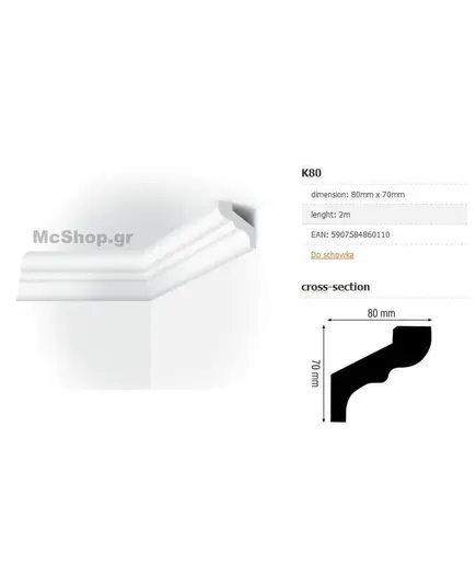 Πολυστερίνη κορνίζα απομίμηση γύψινου μήκους 2 μετρών 70χ80 χιλιοστών K50