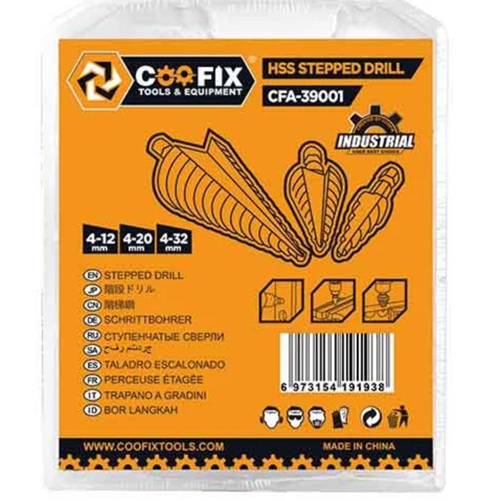Πολυτρύπανο κώνικο φρέζα Σετ 3τμχ αέρος, σιδήρου (4-12, 4-20, 4-32mm) Coofix CFA-39001
