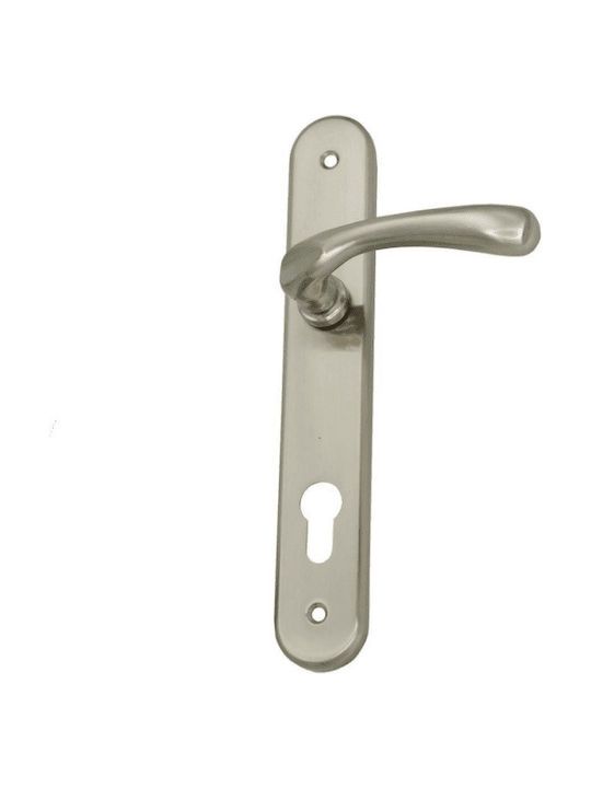 Πόμολο εξώπορτας ΦΙΞ με Πλάκα Γ-Π1712 (Απόσταση Κέντρων 85mm) Ασημί Ματ ζευγάρι