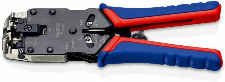 Πρέσα Ακροδεκτών Δικτύου RJ45, RJ10 με Απογυμνωτή & Μηχανισμό Καστάνιας (Μήκος 200mm) Knipex 975112