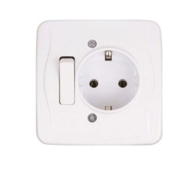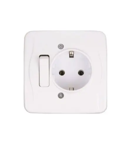 Μονή χωνευτή πρίζα ρεύματος της Eurolamp, σε λευκό χρώμα. Η οποία χρησιμοποιείται για τον έλεγχο του φωτισμού και ταυτόχρονα διαθέτει πρίζα.