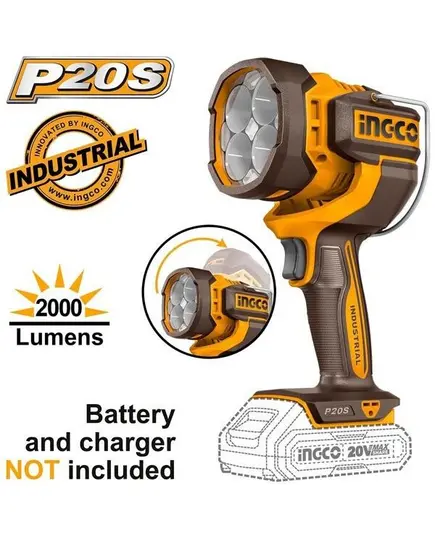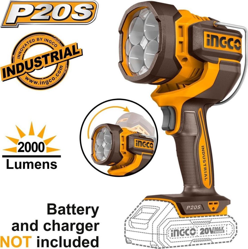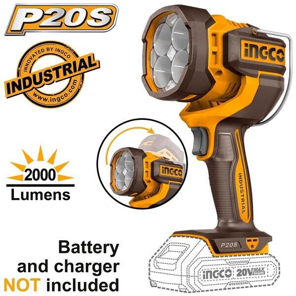 Προβολέας Εργασίας Μπαταρίας LED IP20 με Φωτεινότητα έως 2000lm SOLO (=χωρίς μπαταρία και φορτιστή) Ingco CWLI2088
