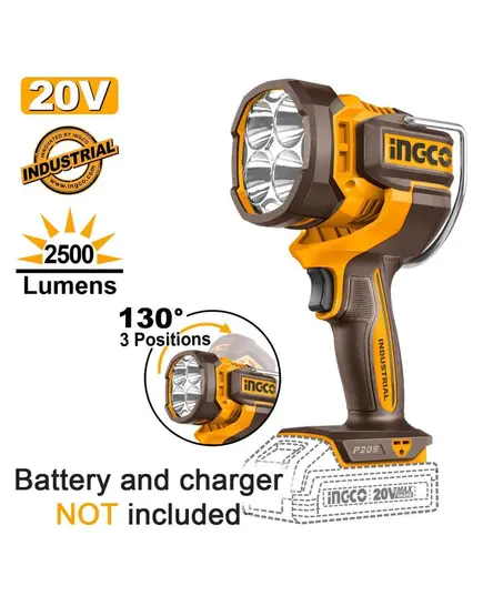 Προβολέας Εργασίας Μπαταρίας LED IP20 με Φωτεινότητα έως 2500lm SOLO (=χωρίς μπαταρία και φορτιστή) Ingco CWLI20885