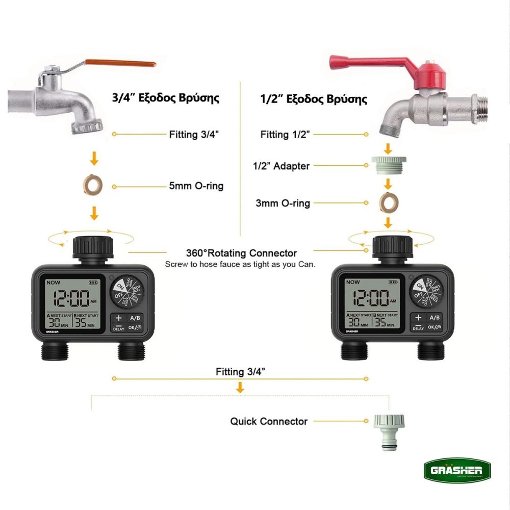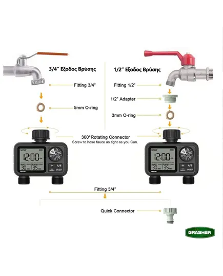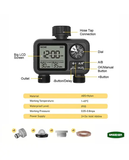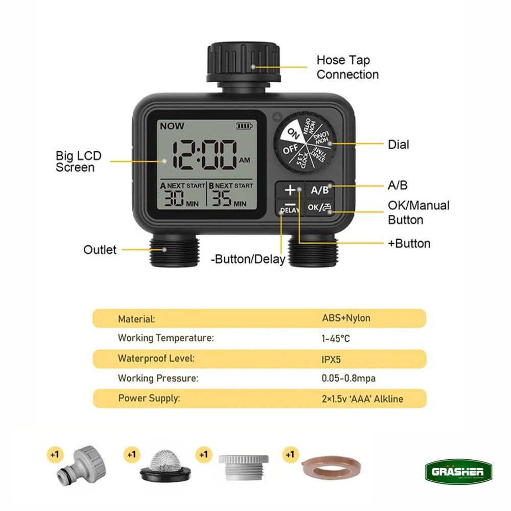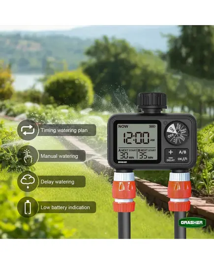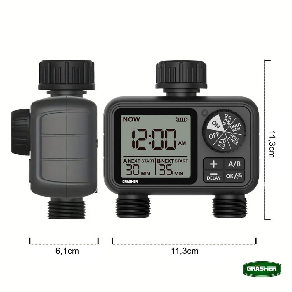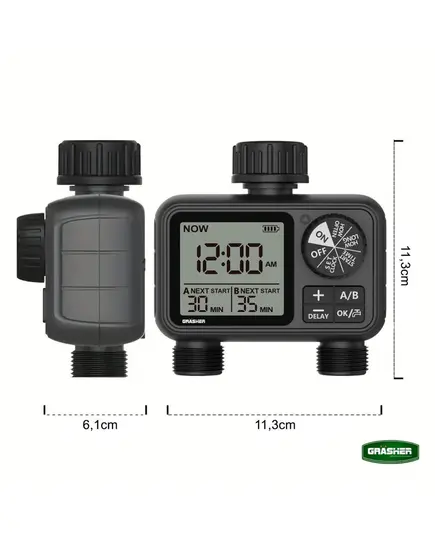 Προγραμματιστής Ποτίσματος Μπαταρίας 2 Εξόδων WT2248 Grasher 104164