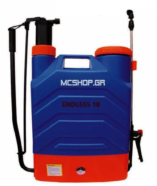 Ψεκαστήρας πλάτης μπαταρίας + χειροκίνητος πλαστικός 18 λιτρών 2 σε 1 ENDLESS18
