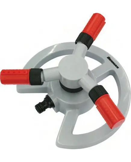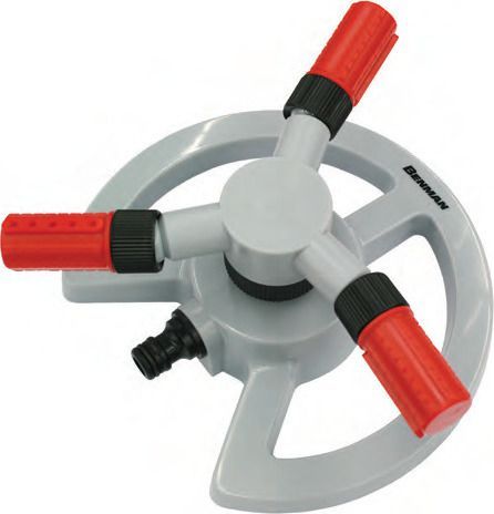 Πλαστικός περιστροφικός ψεκαστήρας ποτίσματος, με τρεις βραχίονες ρυθμιζόμενης γωνίας, για έλεγχο της καλυπτόμενης επιφάνειας ποτίσματος.