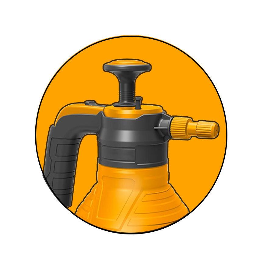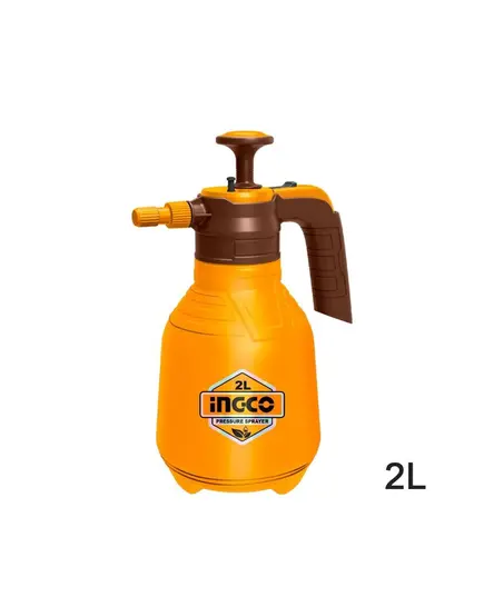 Ψεκαστήρας χειρός της Ingco με πλαστική λαβή & μοχλό αντλίας από αλουμίνιο. Διαθέτει ρυθμιζόμενο ακροφύσιο με ίσιο πίδακα και ψεκασμό ομίχλης. Με χωρητικότητα 2 λίτρα και πίεση 2.5 Bar.
