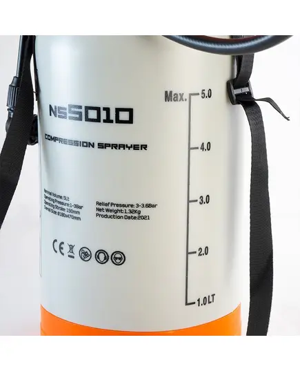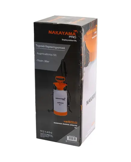 Ψεκαστήρας προπιέσεως Nakayama Pro NS5010 με χωρητικότητα 5 λίτρα, κατάλληλος για τον ψεκασμό κατά των ζιζανίων, των παρασίτων και των εντόμων. Η μέγιστη πίεση που μπορεί να λειτουργήσει είναι τα 3 bar και το συνολικό του βάρος τα 1.7 κιλά.