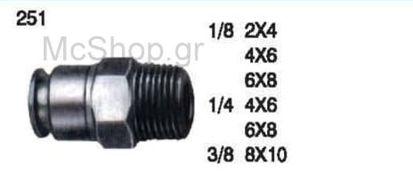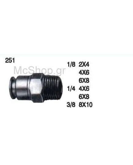 Ρακόρ αυτόματης σύνδεσης σωλήνα nylon αέρα Νο 251