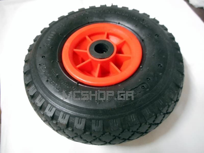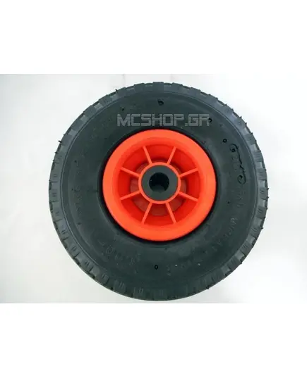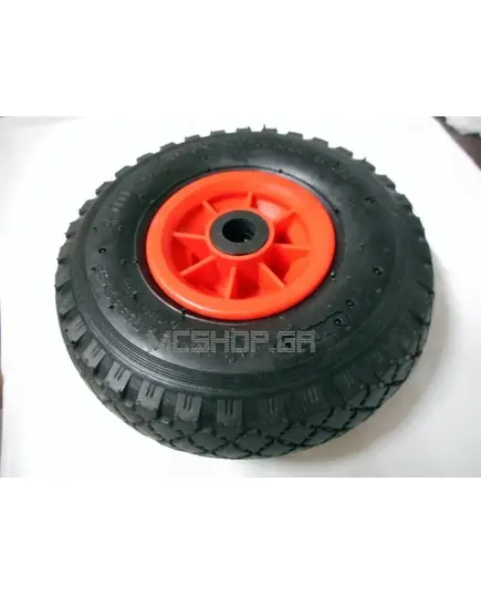 Ρόδα κομπλέ για καρότσι εμπορευμάτων δίτροχο με πλαστική ζάντα και σαμπρέλα φουσκωτή με διάμετρο τρύπας 17 χιλιοστών