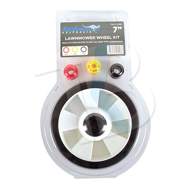 Ρόδα, τροχός χλοοκοπτικού Universal (για όλους τους τύπους χλοοκοπτικών) με εξωτερική διάμετρο 175 χιλιοστά και εσωτερική 9,5 - 12,7 - 14,3 χιλιοστά (τριπλής επιλογής)
