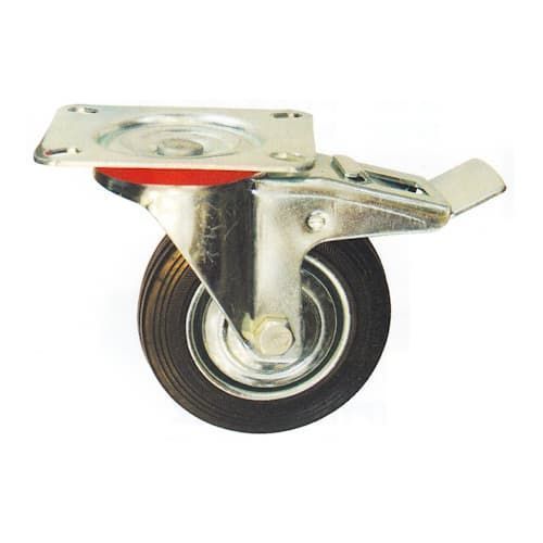 Ρόδες περιστρεφόμενες με φρένο μαύρες με πλάκα 4 οπών διαμέτρου 100 χιλιοστών (Φ100)