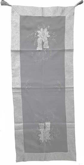 ασημί σχέδια και κρόσι σε κάθε γωνία. Διάσταση 1.10Χ0.40 εκατοστά.