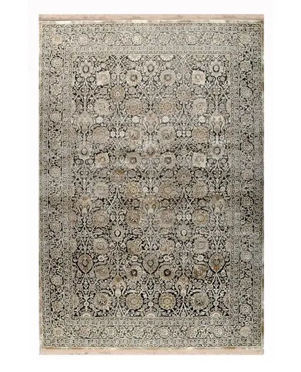 Χαλί μηχανής από τη σειρά Serenity της εταιρείας Tzikas Carpets σε μπεζ απόχρωση με μαύρες, γκρι και εκρού λεπτομέρειες. Στιβαρό χαλί με καλοδουλεμένη μίξη χρωμάτων και εντυπωσιακό κλασικό σχέδιο. Μπορεί να τοποθετηθεί σε όλους τους χώρους του σπιτιού, αναβαθμίζοντας την αισθητική τους. Είναι κατασκευασμένο με ανεξίτηλα νήματα από heatset πολυπροπυλένιο και polyester και πλαισιώνεται από βαμβακερό κρόσσι εξαιρετικής πλέξης. Το χαλί έχει μαλακό πέλος ύψους 10mm, που σχηματίζει ήπιο ανάγλυφο στο περίγραμμα του σχεδίου. Χαρακτηρίζεται από τη μεγάλη πυκνότητα πλέξης που ανέρχεται σε 864.000 κόμπους/τ.μ., ενώ το βάρος του είναι 3.000gsm. Το υπόστρωμά του είναι υφαντό. Είναι αντιστατικό άρα το σκούπισμα με ηλεκτρική σκούπα είναι εύκολο και αποτελεσματικό. Τα χαλιά της εταιρείας Tzikas Carpets είναι υποαλλεργικά και φιλικά προς την υγεία.