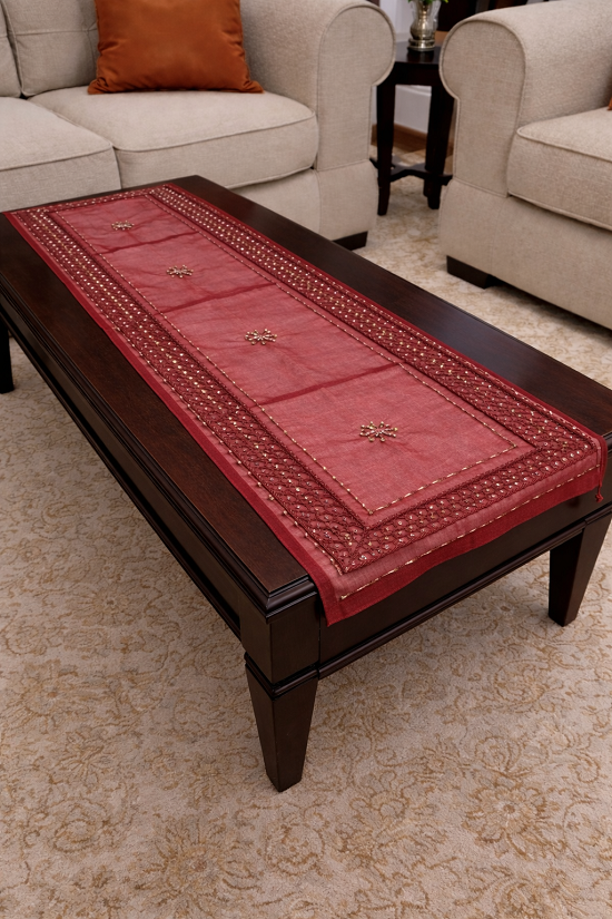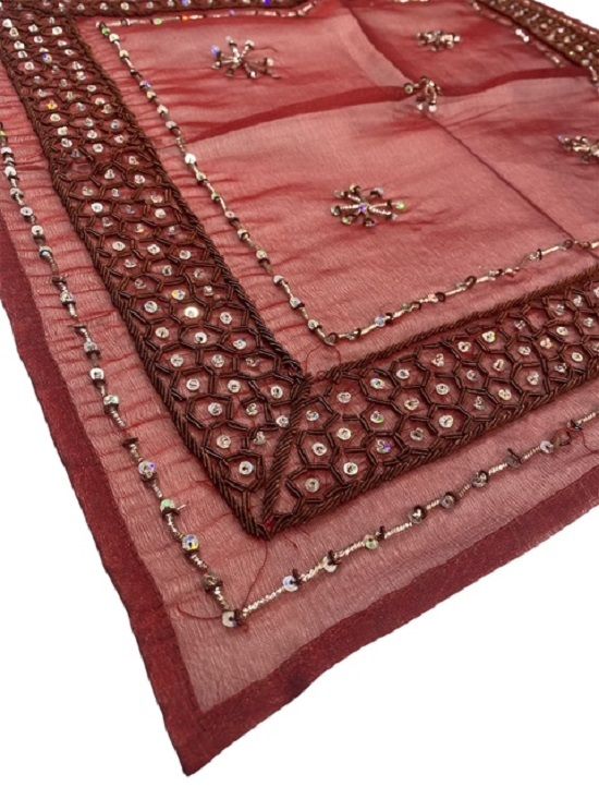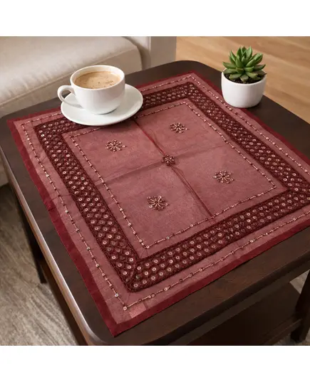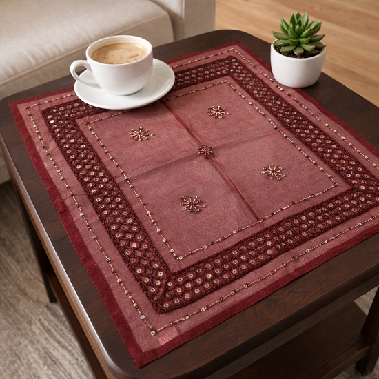 Το σετ 4 τμχ. Καρέ Τραπεζομάντηλο με κέντημα από χάντρες σε μπορντό χρώμα,προσφέρει μια τέλια επιλογή για να δώσει νέα πνοή στο σαλόνι σας.