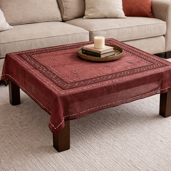 Το Καρέ Τραπεζομάντηλο με κέντημα από χάντρες σε μπορντό χρώμα,προσφέρει μια τέλια επιλογή για να δώσει νέα πνοή στο σαλόνι σας.