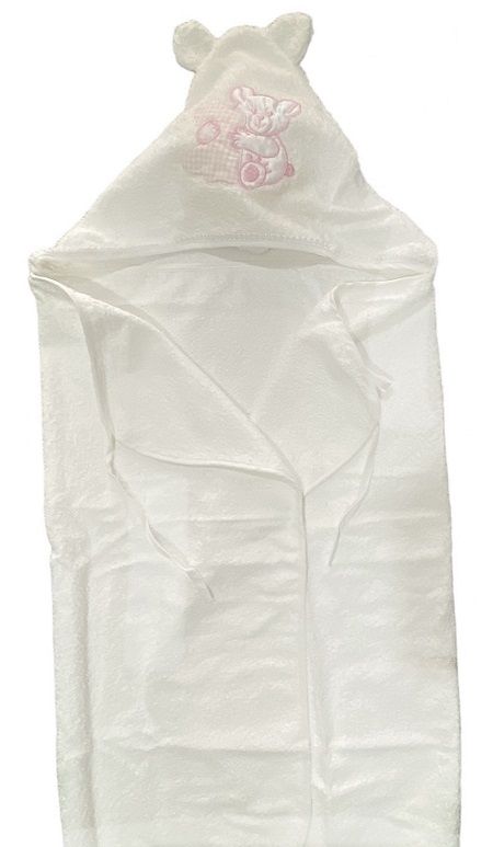 1 Βρεφική κεντητή κάπα μπάνιου με αυτιά 75x75cm.