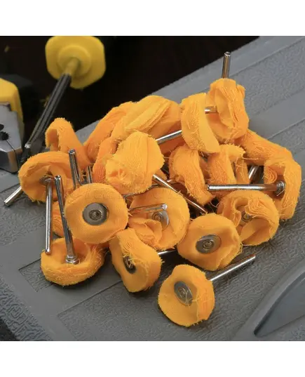 Σετ εξαρτημάτων τ. DREMEL 10 κετσεδάκια γυαλίσματος μαλακά κίτρινα Φ25 με αξονάκια Φ3