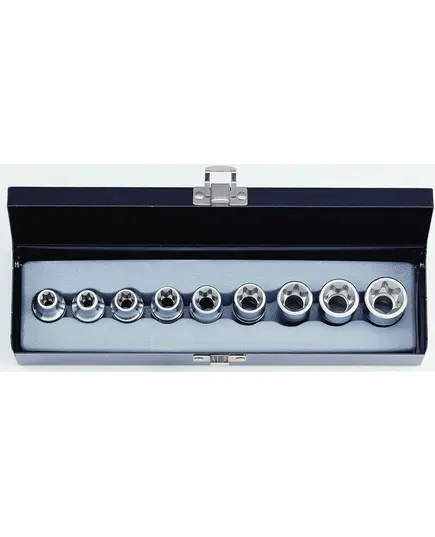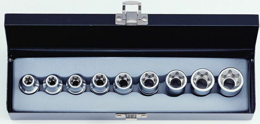 Σετ 9 τεμαχίων καρυδάκια torx θηλυκά κοντά 1/2'' της εταιρείας Force σε μεταλλική κασετίνα.