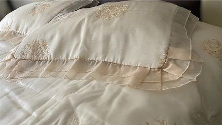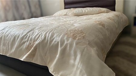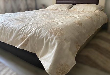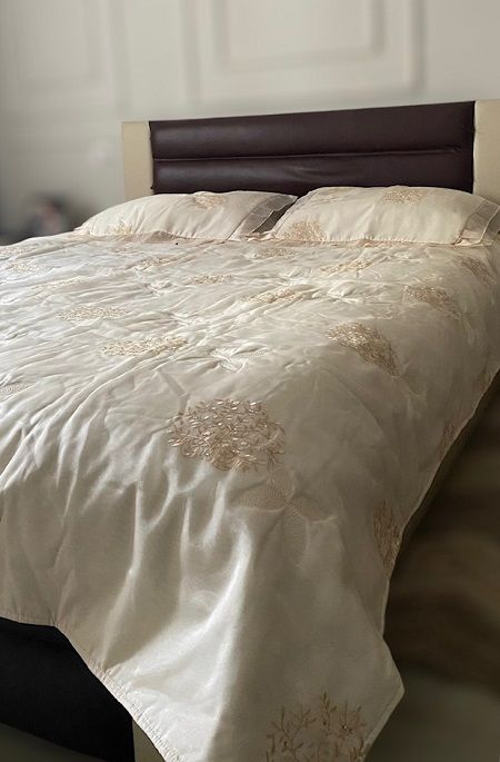 Ποιοτικό νυφικό κουβερλί με προσεγμένες λεπτομέρειες ραφής, μία ιδιαίτερη επιλογή για την ιδιαίτερη εκείνη ημέρα.