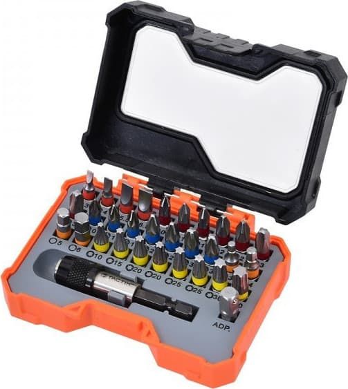 Σετ 32 τεμαχίων από την Tactix με αντάπτορα και κασετίνα αποθήκευσης και μεταφοράς κατάλληλο για πολλές εργασίες βιδώματος.