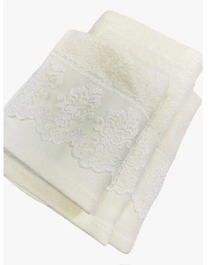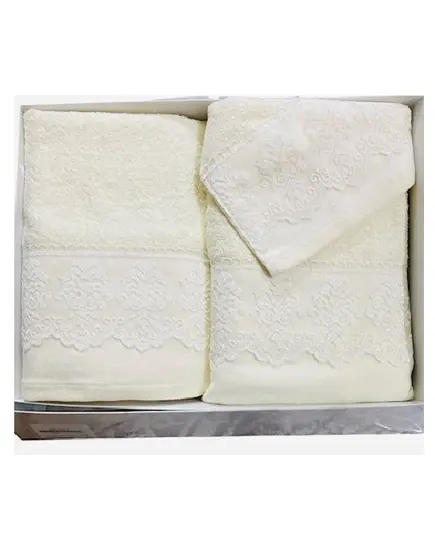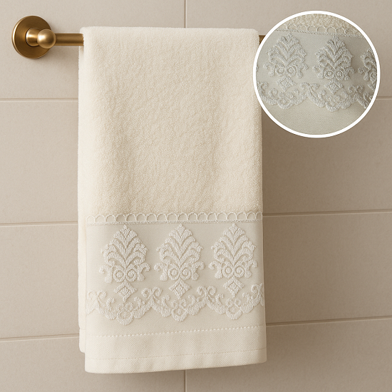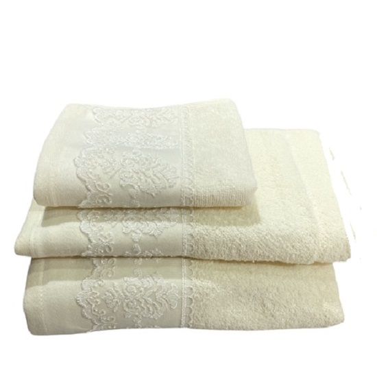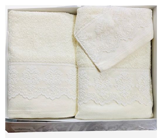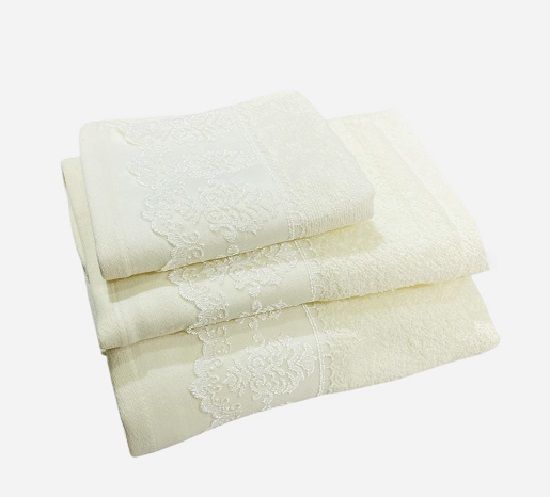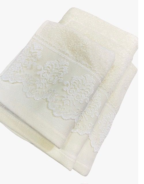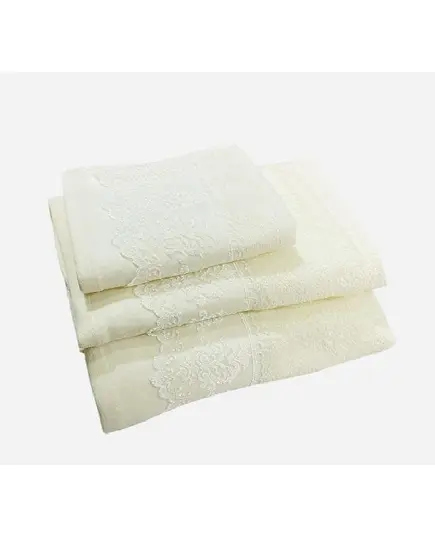 Το σετ πετσετών με διακοσμητική δαντελένια φάσα από την εταιρία Lino προσφέρει απαλότητα, απορροφητικότητα και κομψότητα.