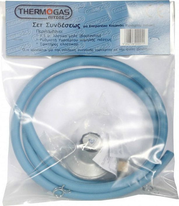 Σετ Ρυθμιστής Υγραερίου με Λάστιχο Χαμηλής Πίεσης Σταθερός Παροχής 1.5 kg/h 8mm/1.5m Thermogatz