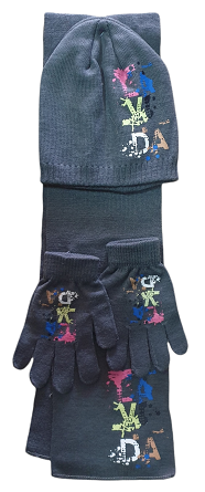 Σετ σκούφος κασκόλ γάντια γκρι "60768"