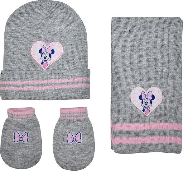 Σετ μπε μπε σκούφος κασκόλ χούφτα γκρι Μίνη "D03182"