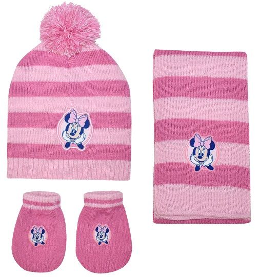 Σετ μπε μπε σκούφος κασκόλ χούφτα ροζ Μίνη "D03181"