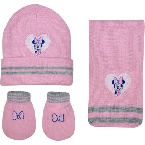 Σετ μπε μπε σκούφος κασκόλ χούφτα ροζ Μίνη "D03182"