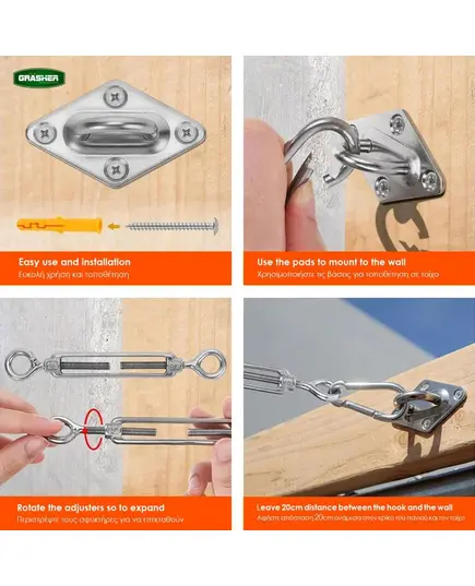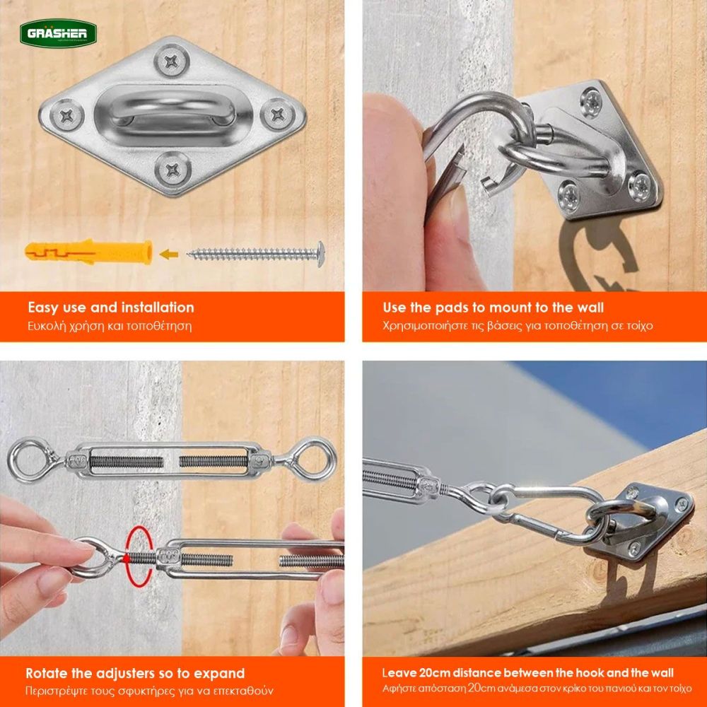 Σετ τοποθέτησης τρίγωνων διχτιών σκίασης (6τμχ) GRASHER 103999
