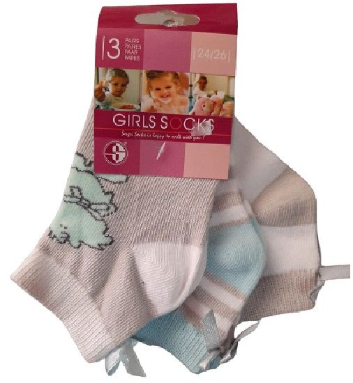 Καλτσάκια παιδικά No 24-26 σετ τριπλέτα με φιογκάκι