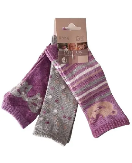 Βρεφικά καλτσάκια Νο 24-26 σετ τριπλέτα μωβ-γκρι