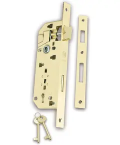Κλειδαριά μεσόπορτας χωνευτή της Domus 40mm κατάλληλη για ξύλινες εσωτερικές πόρτες (αριστερές ή δεξιές), με τετράγωνη μπροστά πλάκα και χρυσό φινίρισμα. Εύκολη μετατροπή άνω γλώσσας σε δεξιά - αριστερή. Στην συσκευασία περιλαμβάνονται 2 κλειδιά και το αντίκρυσμα.