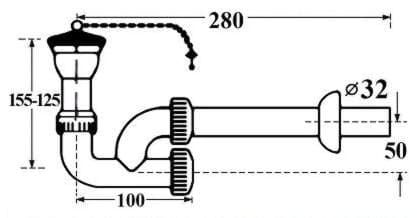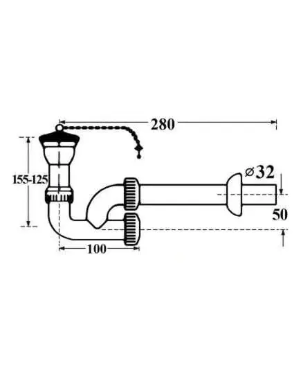 Σιφών Κολωνάτου Νιπτήρα Τουαλέτας Μονό Πλαστικό με Τάπα Καθαρισμού 11/4 Λευκό με Βαλβίδα