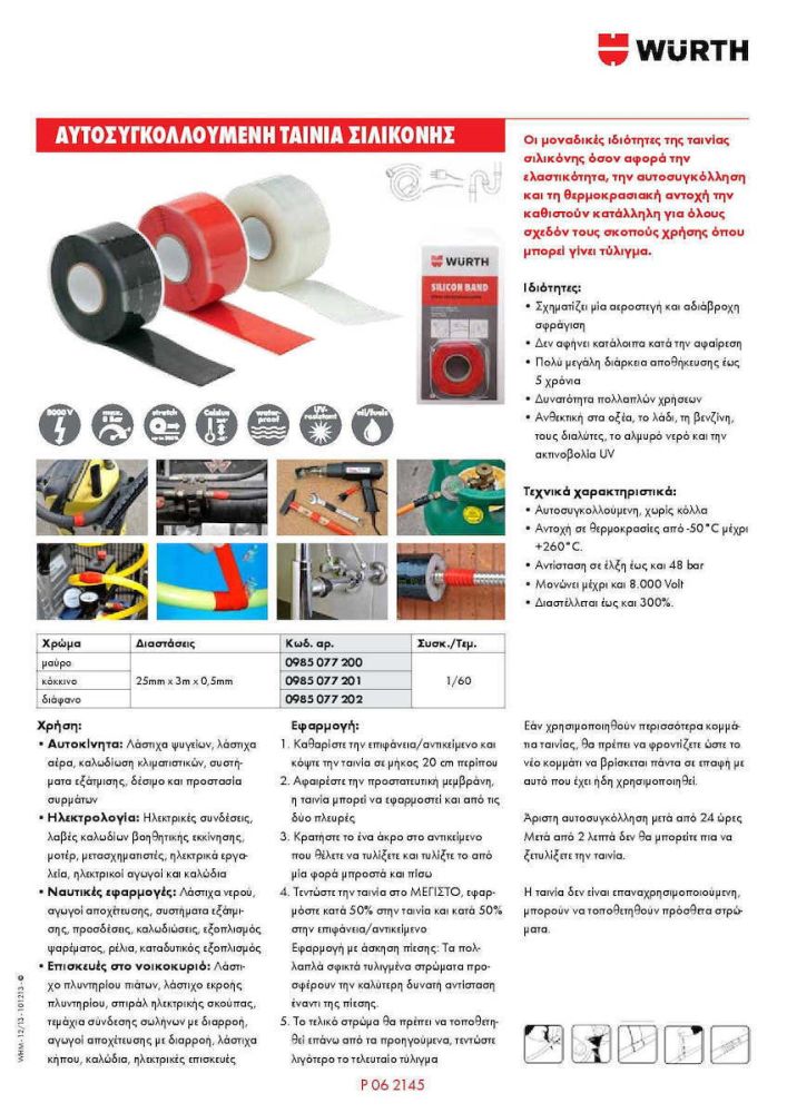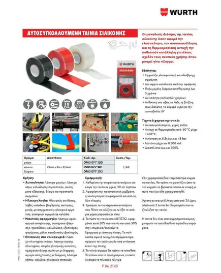 Αυτοβουλκανιζόμενη ταινία 25.4mm X 3.68m silicone Band Black μαύρη WURTH 0985077200