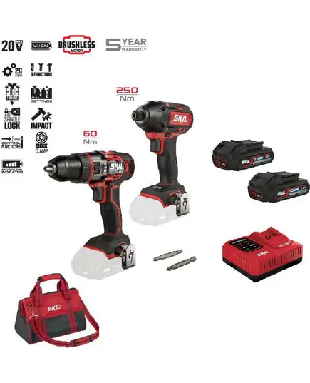 Skil 3357 EA Σετ Δράπανο & Παλμικό Κατσαβίδι 20V με 2 Μπαταρίες 5Ah