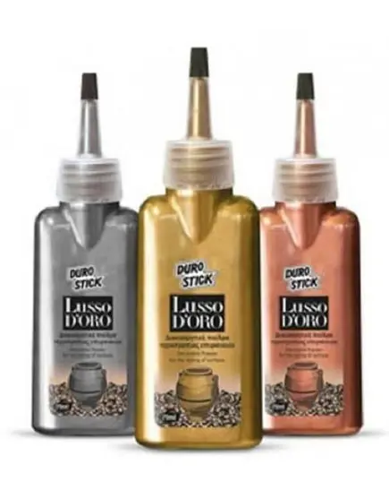 Αναμειγνύουμε το φιαλίδιο LUSSO D'ORO με τo ειδικό βερνίκι DECOLUX της DUROSTICK, αναδεύοντας επιμελώς για να επιτύχουμε την ομοιόμορφη κατανομή της στη μάζα του βερνικιού για 2-3 λεπτά. Αφήνουμε το μείγμα να ωριμάσει για 1-2 λεπτά και επαναλαμβάνουμε την ανάδευση για 2 λεπτά, έως ότου ομογενοποιηθεί πλήρως.
