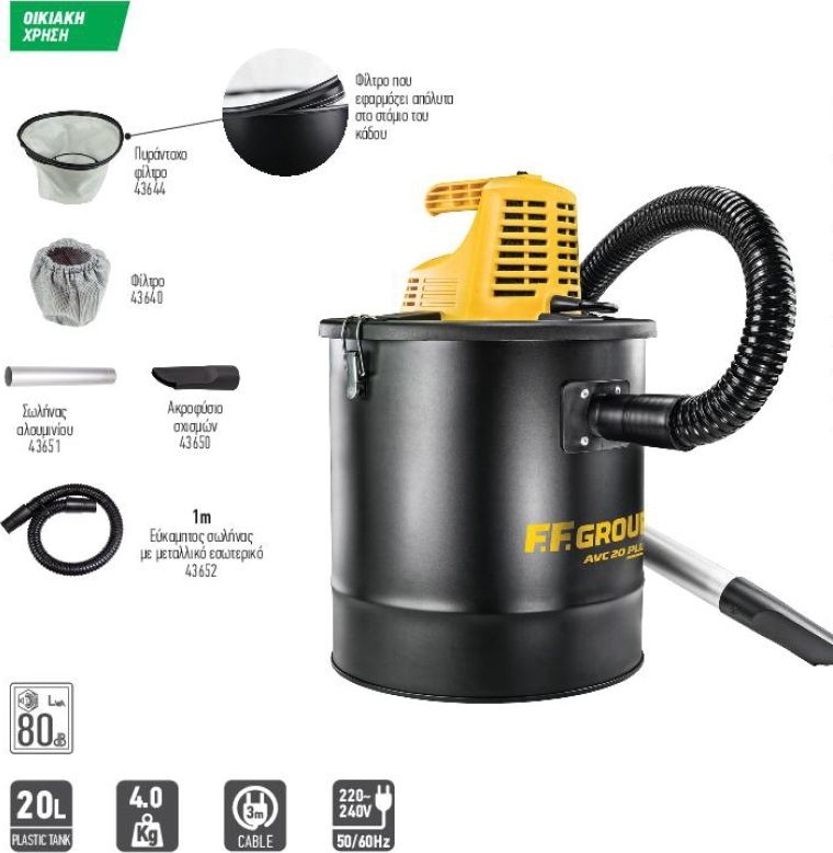 Ηλεκτρική σκούπα στάχτης για ασφαλή απομάκρυνση της στάχτης από τις σόμπες, τα τζάκια, τα μπάρμπεκιου, τις ψησταριές κλπ.