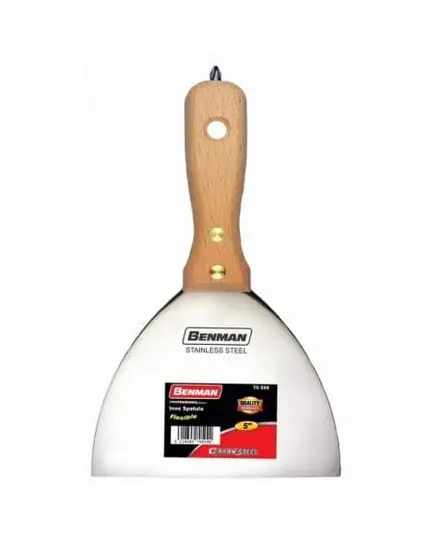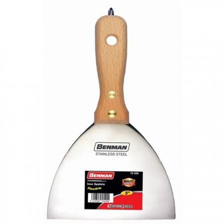 Σπάτουλα γυψοσανίδας ανοξείδωτη INOX 125mm ξύλινη λαβή με κατσαβίδι BENMAN 70599