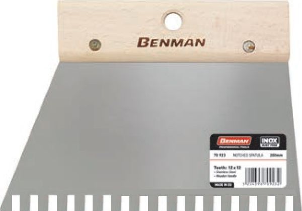 Σπάτουλα inox με τετράγωνο δόντι 6mm BENMAN 200mm 70921