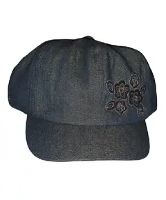 Μπερές (τραγιάσκα) τζιν παιδικός με επένδυση φλις και διακοσμητικά άνθη απο την εταιρεία yanna.