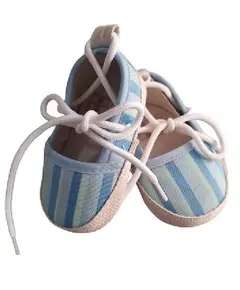 Παπουτσάκια αγκαλιάς Νο 16-18 (0-6 μηνών) σιέλ ριγέ ασπαντρίγια !