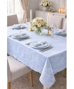Το σετ τραπεζομάντηλο με 12 πετσέτες φαγητού,υψηλής ποιότητας, σε υπέροχο γαλάζιο χρώμα,ανάγλυφο ύφασμα και κέντημα στο τελείωμα του -προσφέρει κομψότητα στο χώρο σας.  Είναι κατάλληλο για τη διακόσμηση τραπεζαρίας ή της κουζίνας σας προσφέροντας μια όμορφη επιλογή και είναι ιδανικό για...