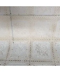 Σεμεδάκι χριστουγεννιάτικο σε άσπρο (διάφανο) χρώμα με ασημί σχέδια και κρόσι σε κάθε γωνία. Διάσταση 1.10Χ0.40 εκατοστά.