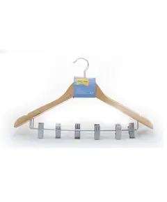 Κρεμάστρα ρούχων ξύλινη με μεταλλικά κλιπ  Σετ-3 τεμάχια Υλικό: Ξύλο+μέταλλο  Σε φυσικό χρώμα Διάσταση: 44x23x1,2εκ