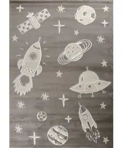 Χαλί μηχανής από τη σειρά Smile της εταιρείας Tzikas Carpets με πλανήτες και διαστημόπλοια σε γκρι αποχρώσεις. Είναι ιδανικό για το παιδικό δωμάτιο . Ανθεκτικό χαλί στην σκληρή καθημερινή καταπόνηση από το παιδικό παιχνίδι. Είναι κατασκευασμένο με ανεξίτηλα νήματα από heatset...