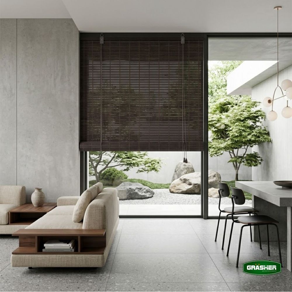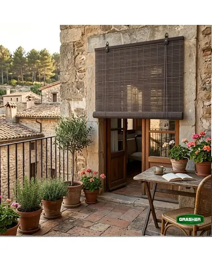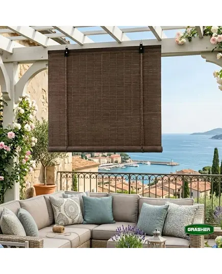 Στόρι σκίασης της εταιρείας Grasher, κατάλληλο για τοποθέτηση σε παράθυρα και μπαλκονόπορτες. Κατασκευασμένο από μπαμπού, ένα φυσικό και οικολογικό υλικό, ιδιαίτερα ελαρφύ, το οποίο χαρακτηρίζεται από αντοχή και ανθεκτικότητα.