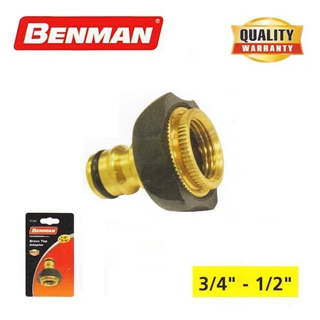 Συστολή ορειχάλκινη με πάσο 3/4'' και μειωτή 1/2'' Benman. Διαθέτει αντιολισθητικό σώμα.